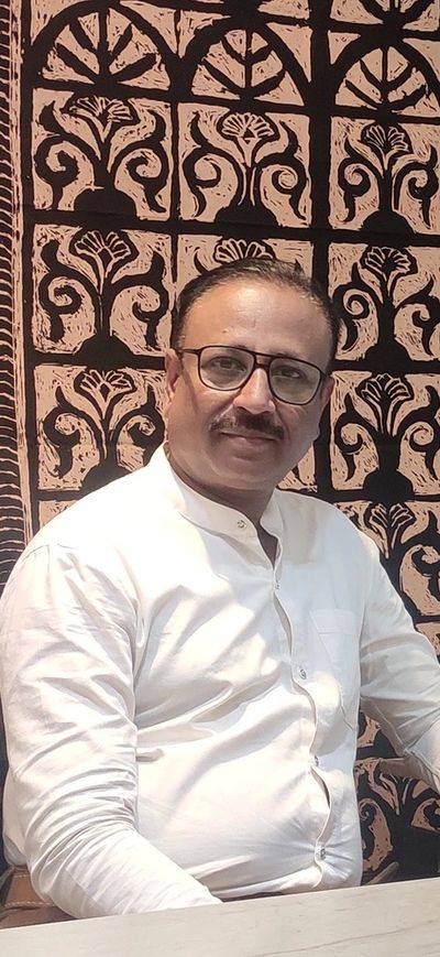 By 2003, I opened my first showroom in Hyderabad which I personally designed with careful attention to spatial flow, lighting, and texture. Every corner of the space reflected the same care and composition that guide my art. Since then, I have continued to showcase my collections across India, while dedicating time to developing new designs, managing the printing unit, and curating the visual and spatial identity of my brand.
